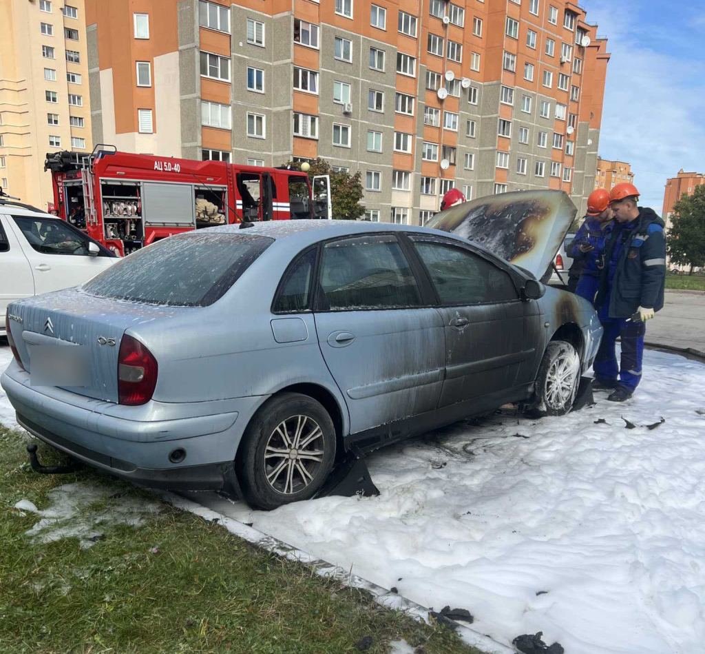 В полдень 2 октября очевидец сообщил спасателям, что на стоянке возле многоквартирного дома по проспекту Янки Купалы в Гродно горит легковой автомобиль.