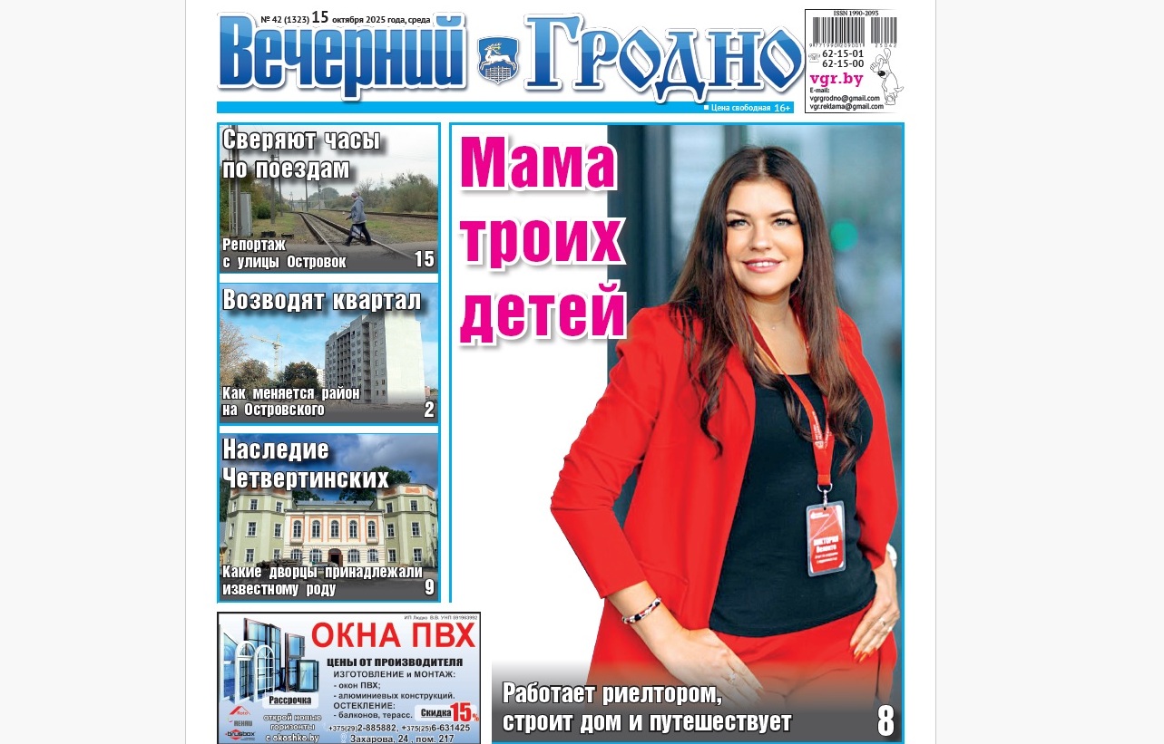 Интервью с многодетной мамой, репортаж с Островка и дворцы Четвертинских — анонс свежего номера газеты «Вечерний Гродно»