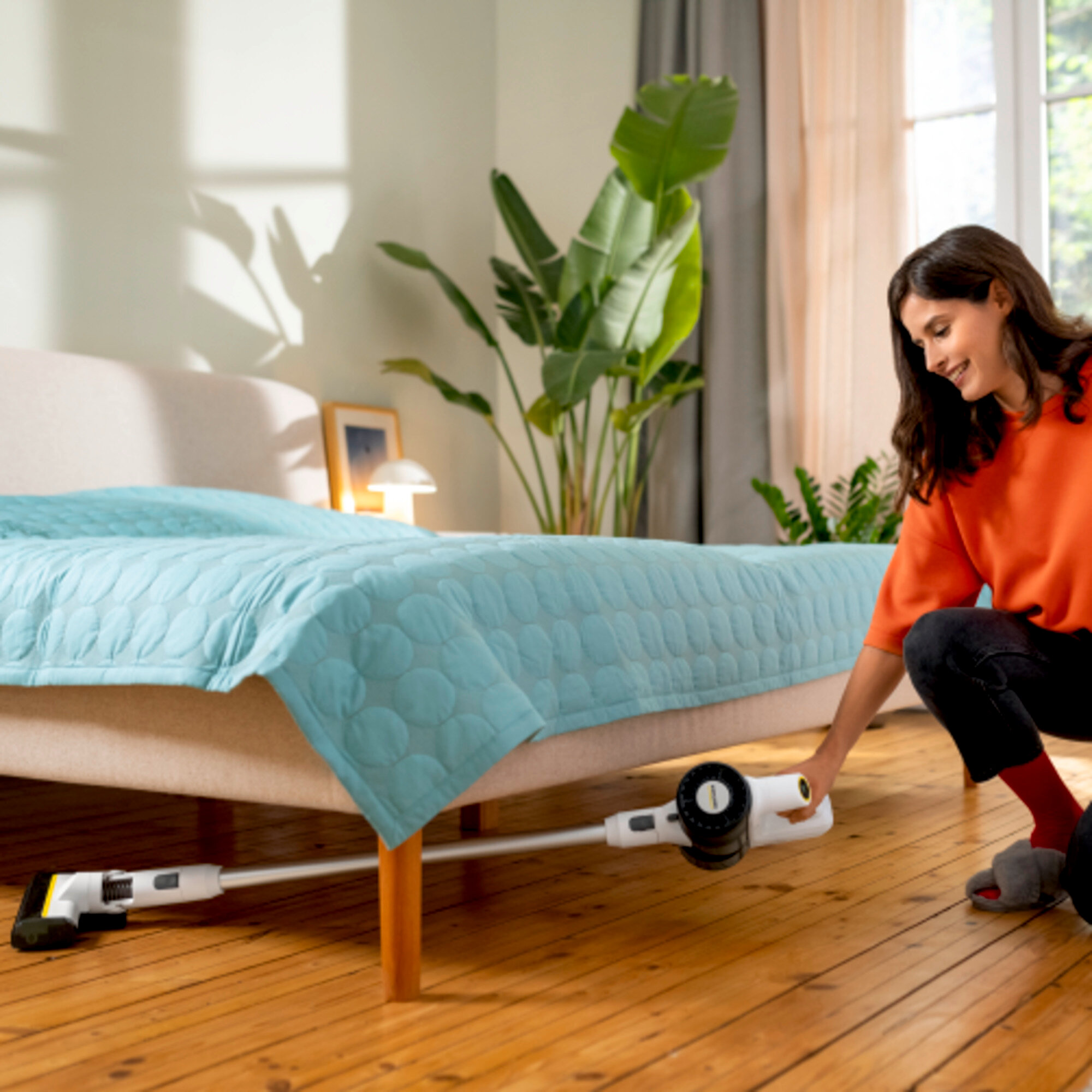 Вертикальный аккумуляторный пылесос KVA 2 – это просто must-have в вашем доме. Низкий уровень шума, отличная мощность всасывания и отсутствие проводов – и это еще не все преимущества этого пылесоса. Соберет пыль за считанные секунды, а три режима уборки позволяют адаптировать пылесос к любой задаче – от быстрой промежуточной уборки до тщательного устранения стойких загрязнений. Очень малый вес (всего 2,1 кг) исключает переутомление даже при выполнении работ над головой. Благодаря поворачивающемуся на 180° шарниру аппарат отличается исключительной маневренностью. Чистоту выпускаемого воздуха гарантирует многоступенчатая система HEPA-фильтрации, задерживающая 99,9 % частиц, благодаря этому пылесос идеально подходит для аллергиков.