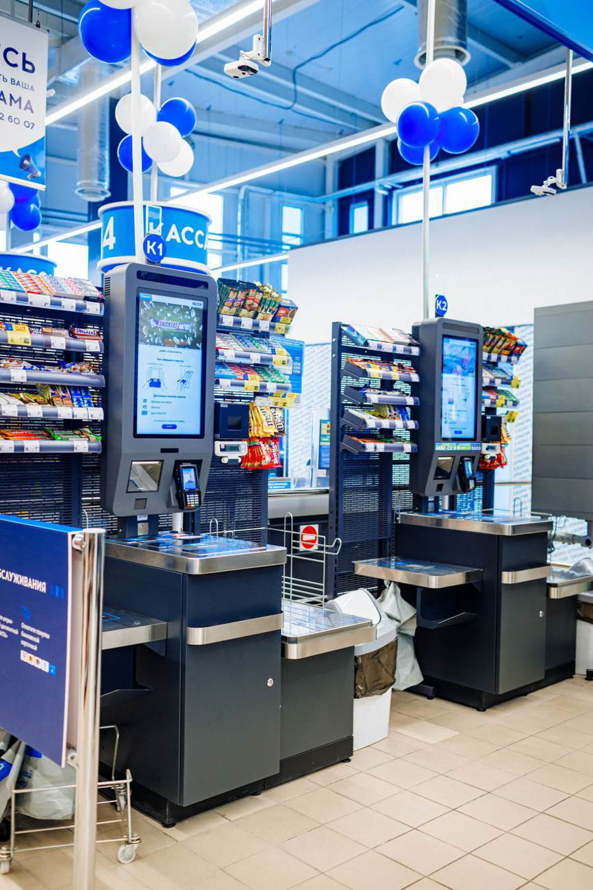 Для удобства покупателей в магазине разместили 10 касс: 4 обычных касс и 6 касс самообслуживания.