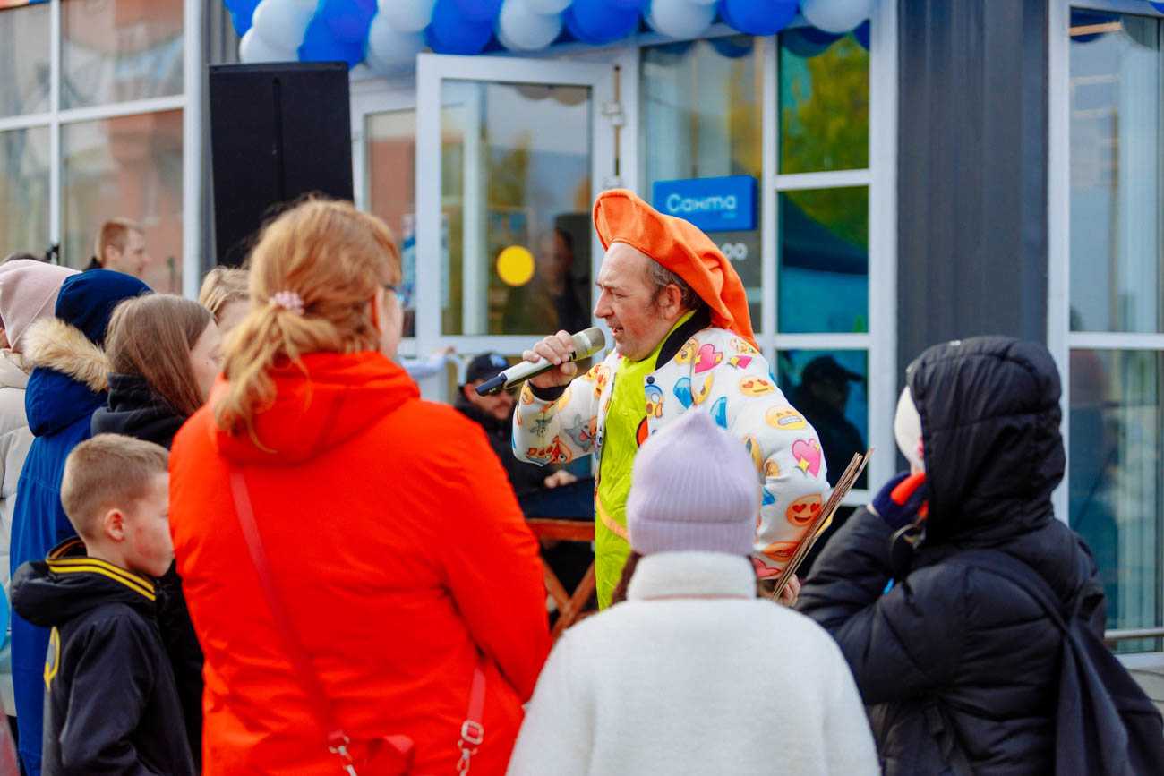 Открытие превратилось в праздник микрорайона. Для покупателей подготовили сюрпризы. На улице перед входом состоялся концерт с участием артистов городского Центра культуры. Самых юных жителей «Девятовки» развлекали аниматоры: малыши фломастерами разрисовывали стенд с изображением города и мелками выводили буквы на тротуарной плитке.