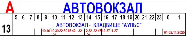 Так, в район кладбищ «Аульс» и «Секрет» организуют больше рейсов на автобусном маршруте №13 «Автовокзал — кладбище «Аульс». Время отправления с начальных остановок можно посмотреть ниже.