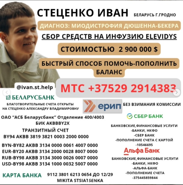 В социальных сетях родители мальчика не раз подчеркивали срочность сбора: сейчас у Вани кризисный возраст, в любой момент он может сесть в инвалидное кресло. Заболевание развивается стремительно, но ее еще можно остановить. Для этого нужен очень укол с дорогим препаратом стоимостью 2,9 миллиона долларов. Для родителей Вани такая сумма неподъемная, поэтому они решили организовать сбор средств на лечение своего сына.
