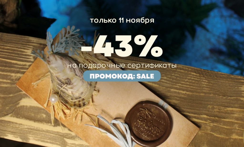 11 ноября в тайской спа-деревне Baunty действует скидка -43% на приобретение подарочных сертификатов в салоне и online (промокод: SALE)