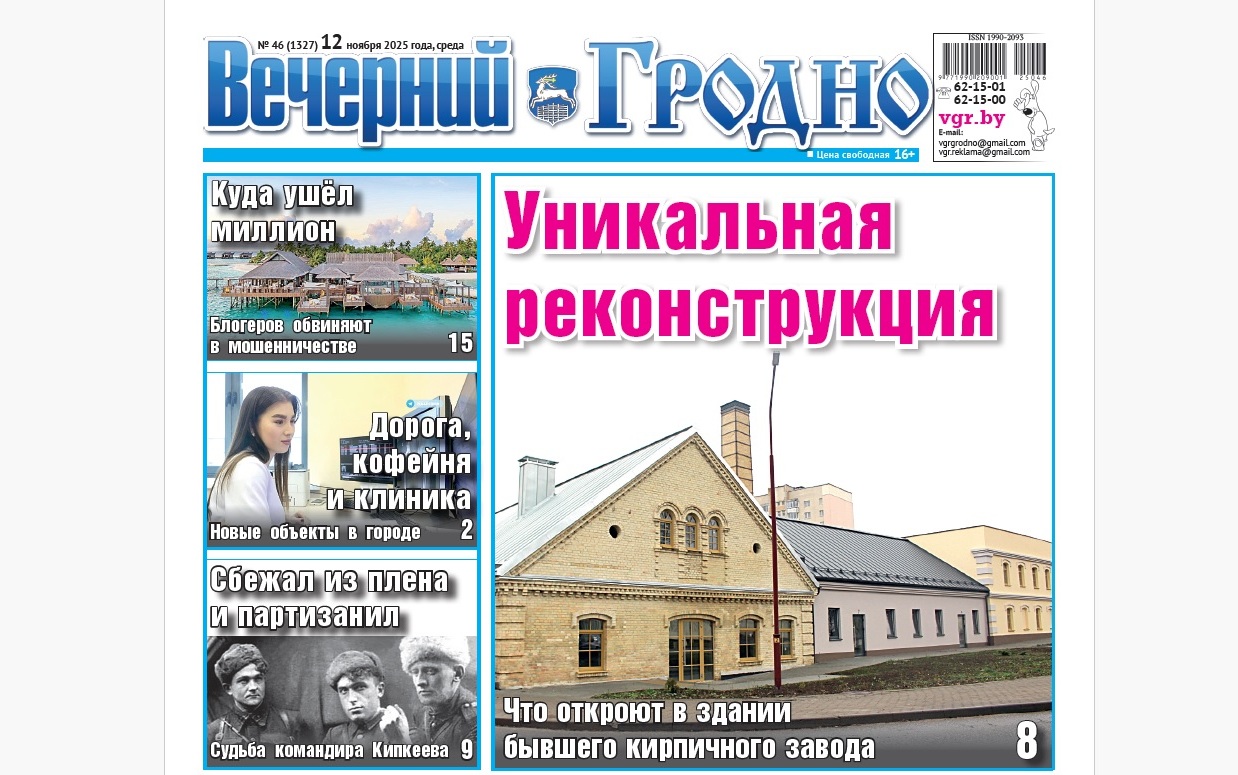 В очередном ноябрьском номере газеты «Вечерний Гродно» мы собрали самые интересные новости из жизни города.