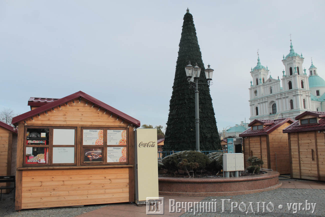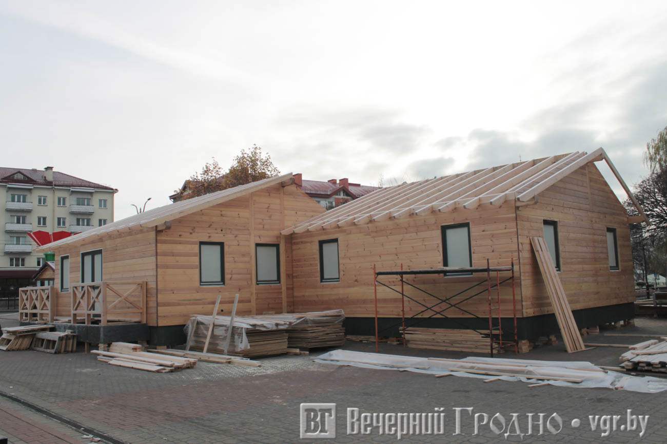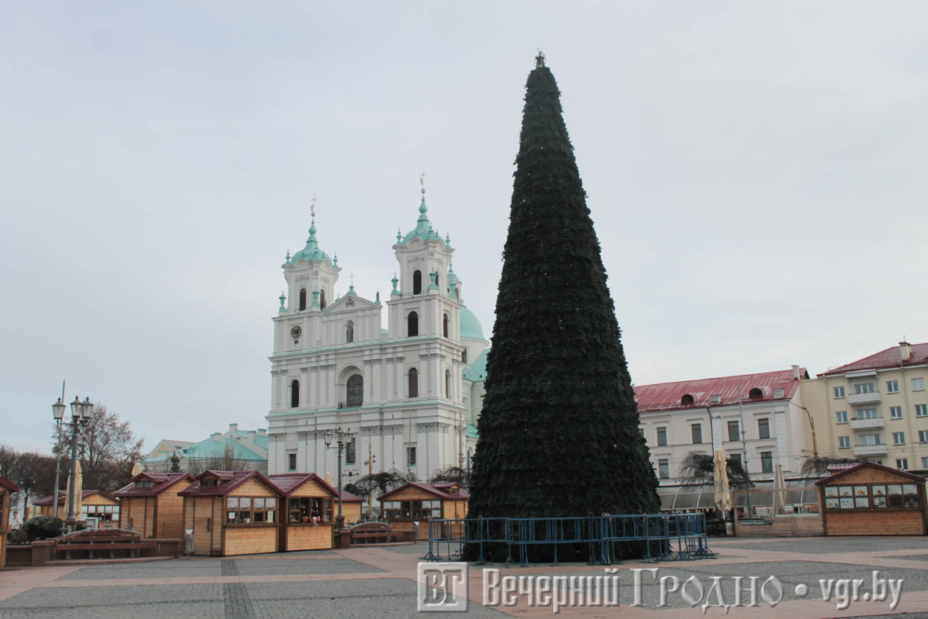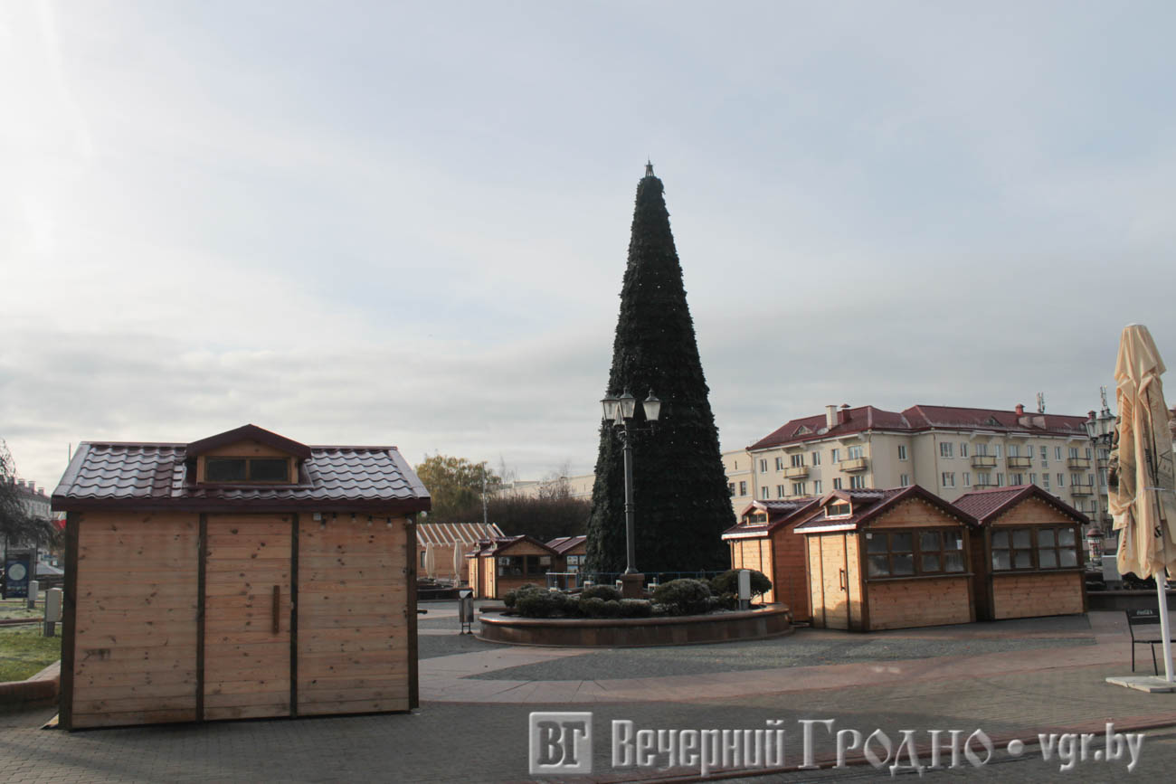 Подготовка к Новому году идет и на других улицах Гродно. Каркас для установки елки собирают на автовокзале.