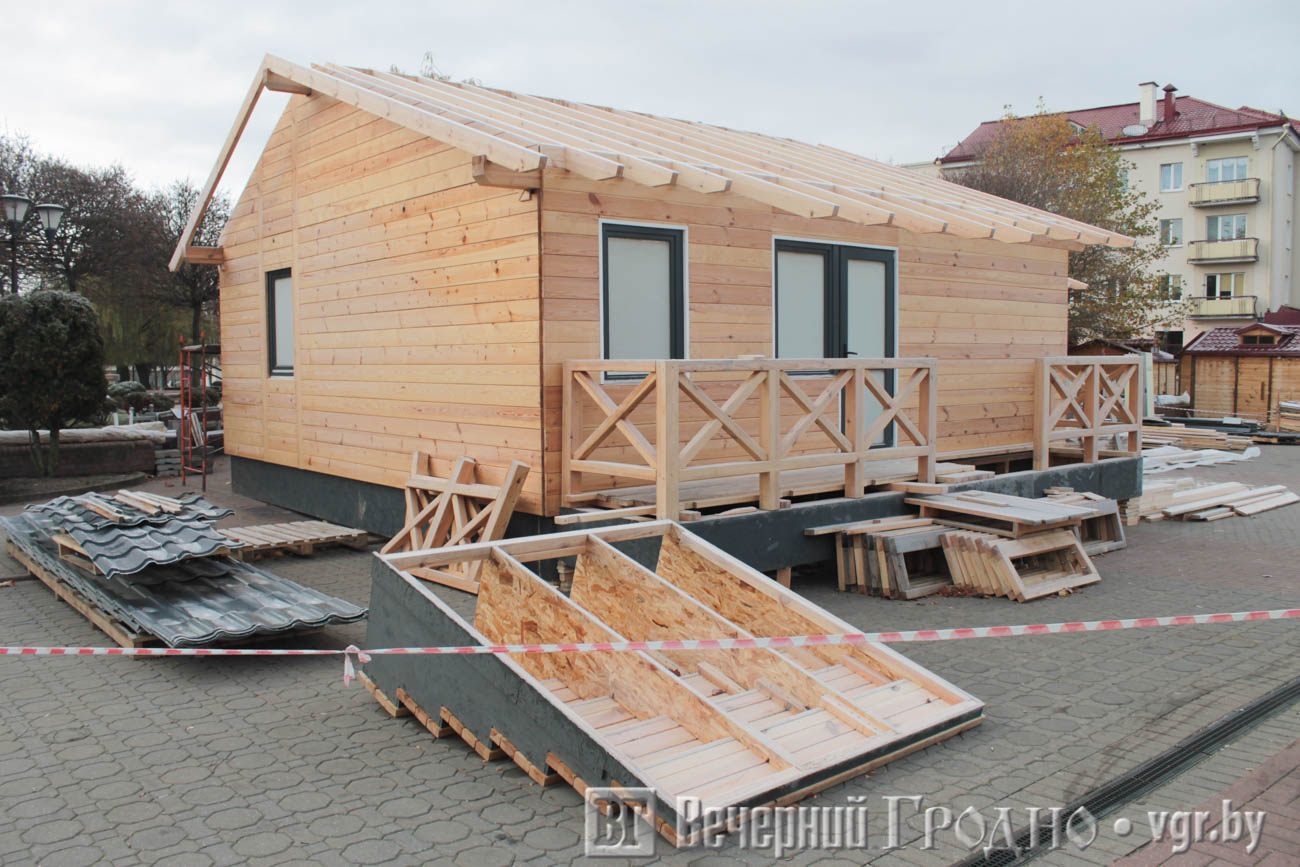На Советской площади уже установили елку. Кроме того, здесь близится к завершению строительство резиденции Деда Мороза.