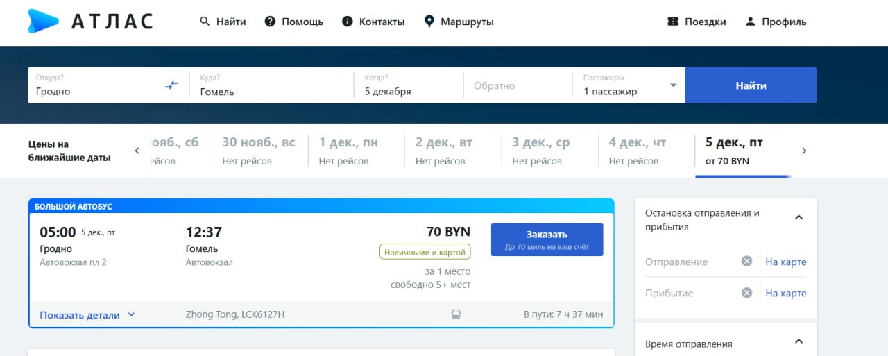 Сервис Атласбас предлагает и третий – самый удобный способ – поездку на прямом автобусе! С 5 декабря начинает курсировать прямой автобус между Гродно и Гомелем.