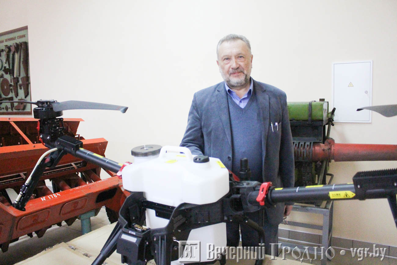 Мы встречаемся в здании кафедры земледелия и механизации технологических процессов ГГАУ. Александр Иванович рассказывает, что недавно он начал преподавать новую дисциплину «Технологии точного земледелия». Студенты изучают современную технику в сельском хозяйстве. Наш собеседник показывает огромный агродрон. Такой в конце сентября показывали Президенту Александру Лукашенко во время его поездки в Могилевскую область.