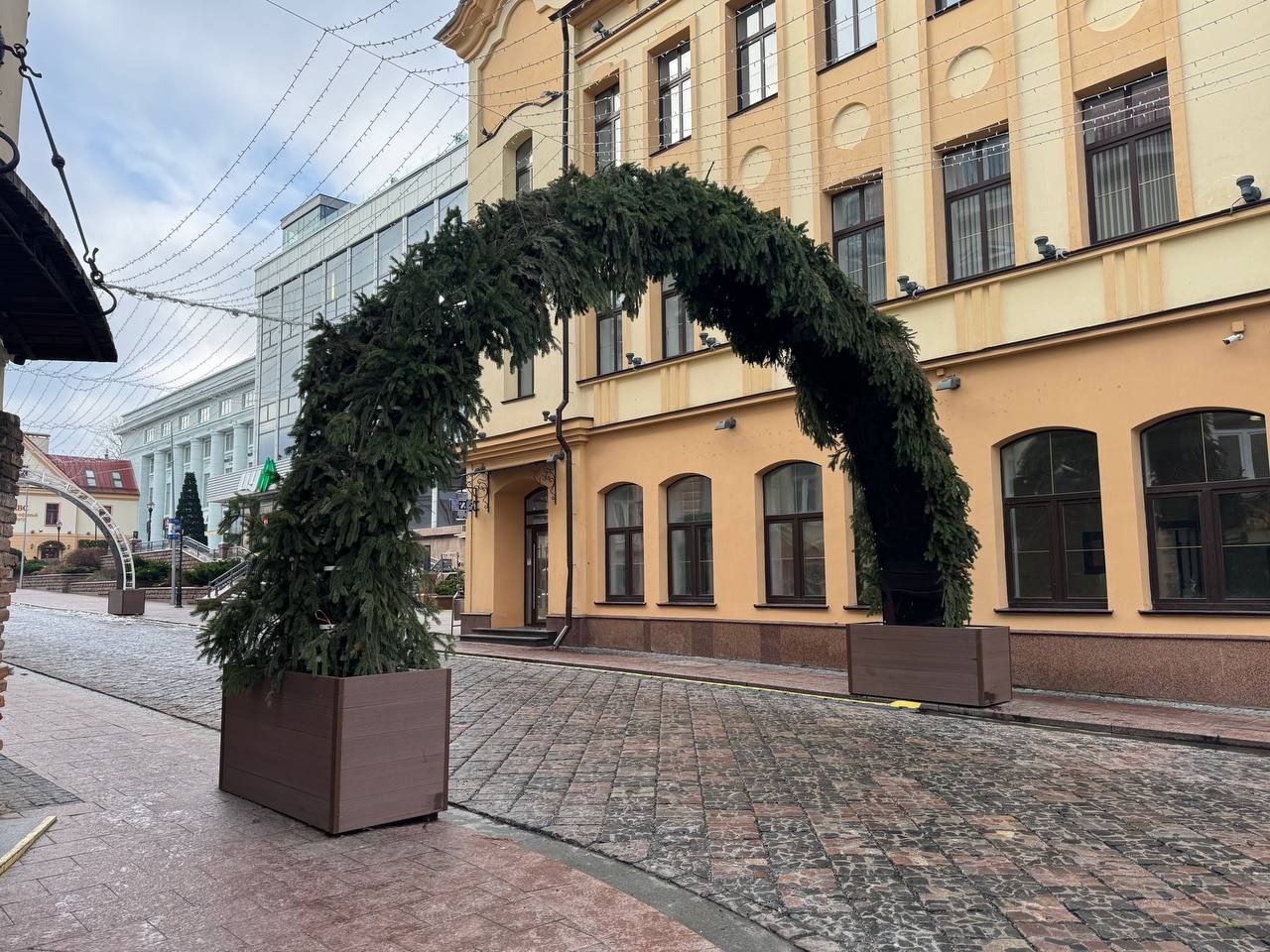 Сотрудники предприятия «Гроднозеленстрой» приступили к сезонному обновлению арок на пешеходной улице Советской. Цветочные композиции, которые украшали центр города все лето, уступят место праздничному убранству из еловых веток.