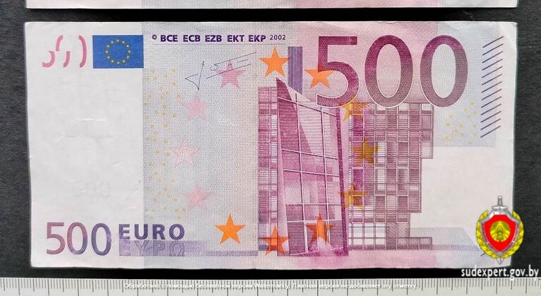 В Гродненский межрайонный отдел Государственного комитета судебных экспертиз поступили два денежных билета Европейского центрального банка номиналом 500 евро, образца 2002 года.