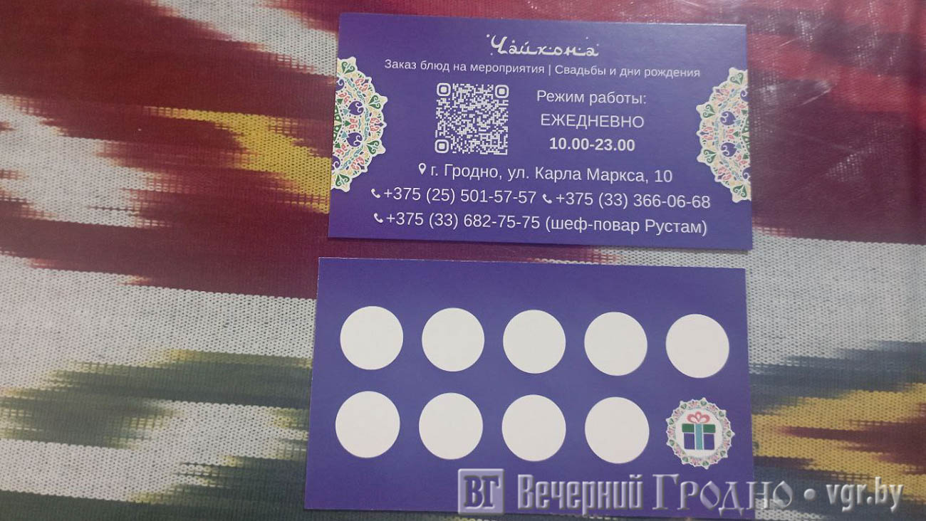 Чайхана запустила программу лояльности. Все гости получают бонусную карту. Каждый десятый заказ дает право выбрать бесплатные блюда либо выпечку на 10 рублей.