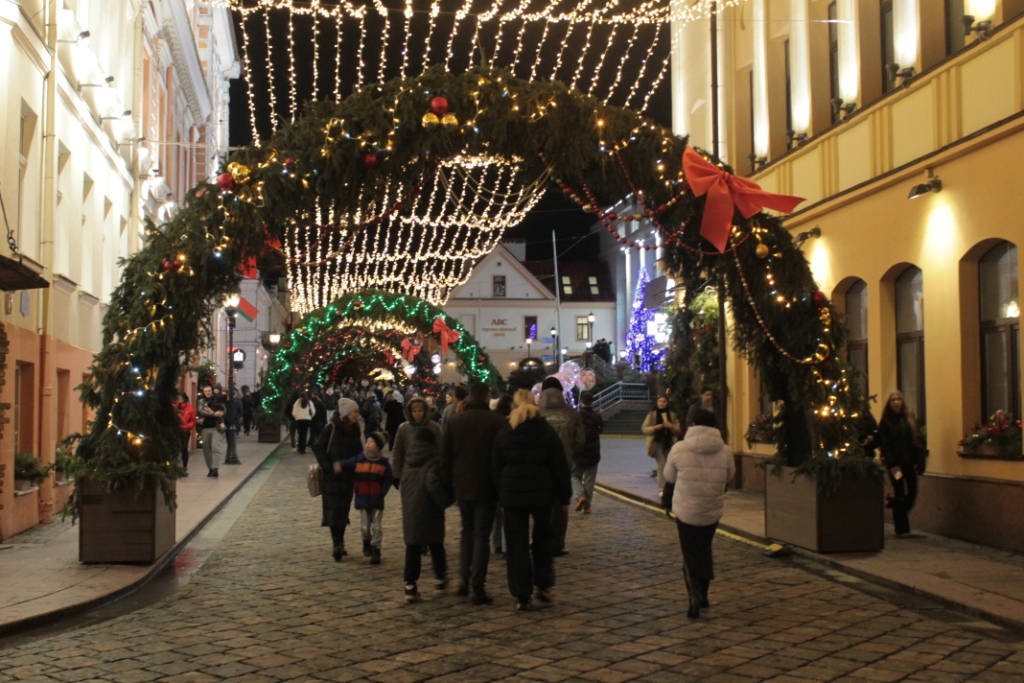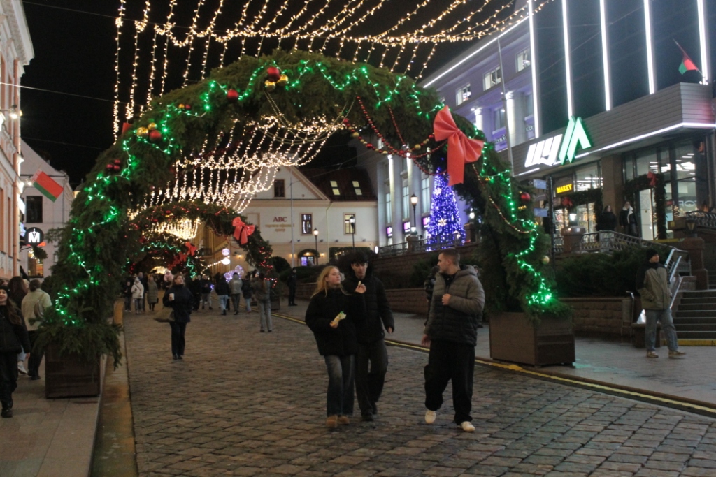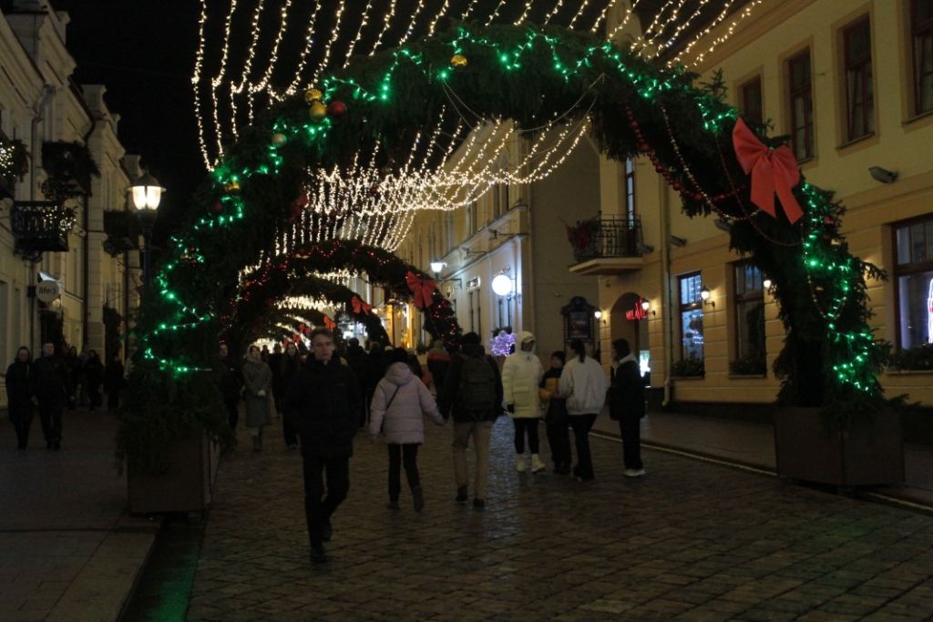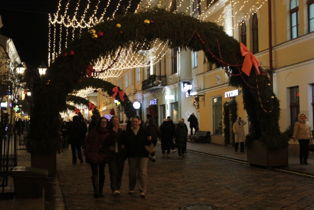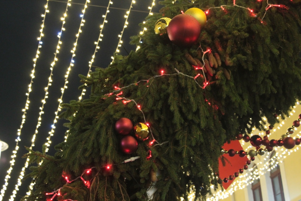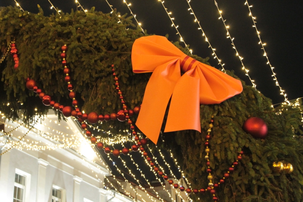 На пешеходной Советской улице установили и украсили новогодние арки. Кроме того, здесь повесили огромные гирлянды, которые с наступлением темноты превращаются в волшебное небо.