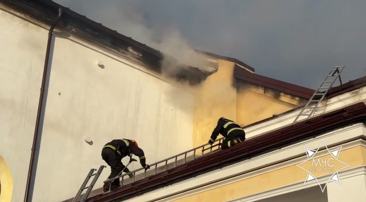 Сергей Леонов, первый заместитель начальника Гродненского областного управления МЧС (руководитель тушения пожара) рассказал, что проводились работы по вскрытию кровли для тушения скрытых очагов горения: