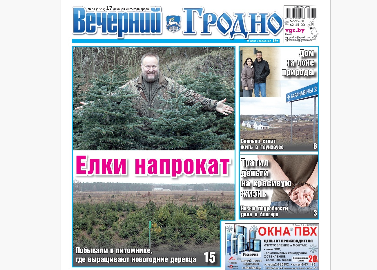 Елки напрокат, как живут в танхаусе и новогодние новости — анонс свежего номера газеты «Вечерний Гродно»