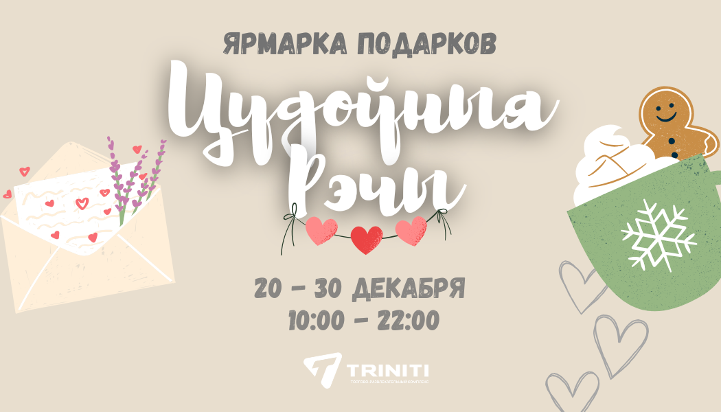 С 20 по 30 декабря на первом этаже TRINITI, рядом с магазинами CONTE и КРАВТ, развернется новогодняя ярмарка подарков «ЦУДОЎНЫЯ РЭЧЫ». Она будет работать ежедневно с 10:00 до 22:00, вход свободный.