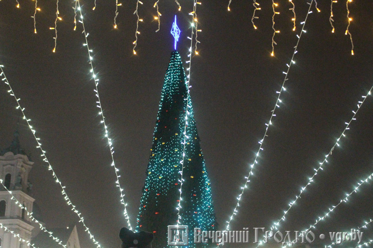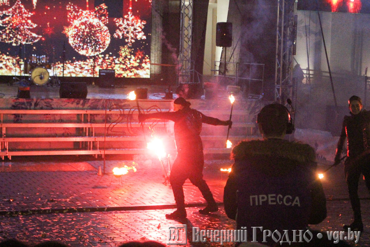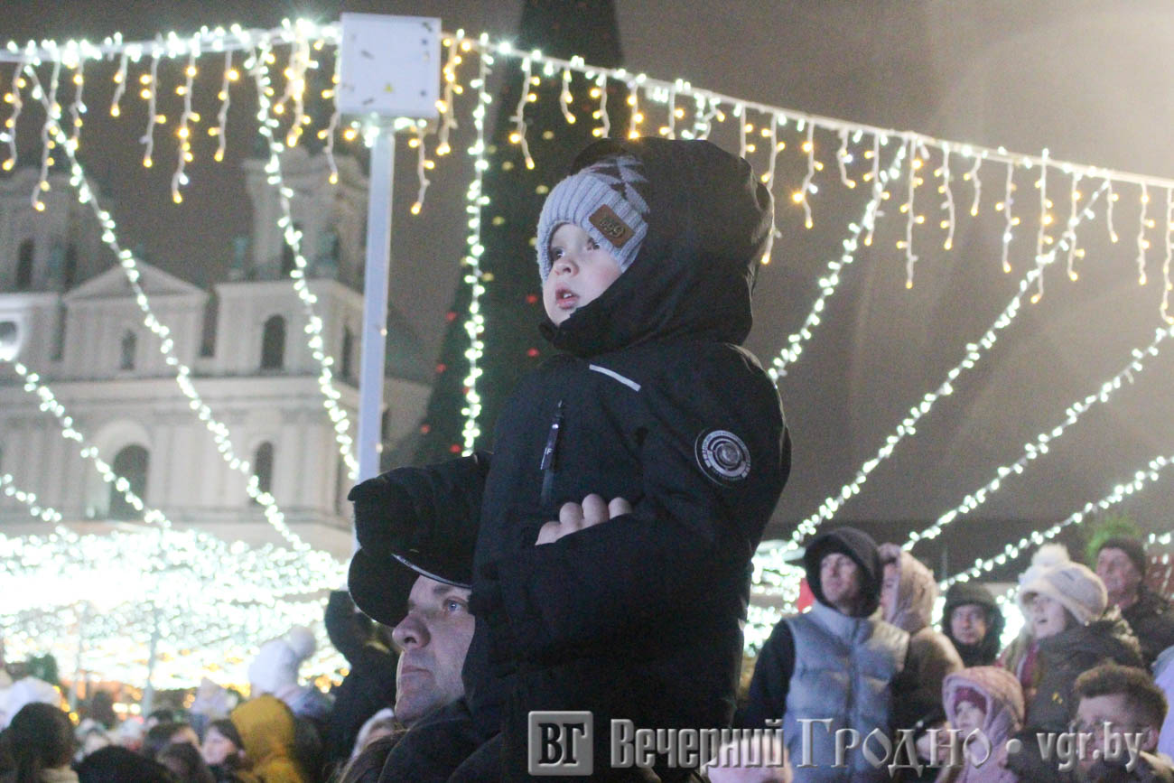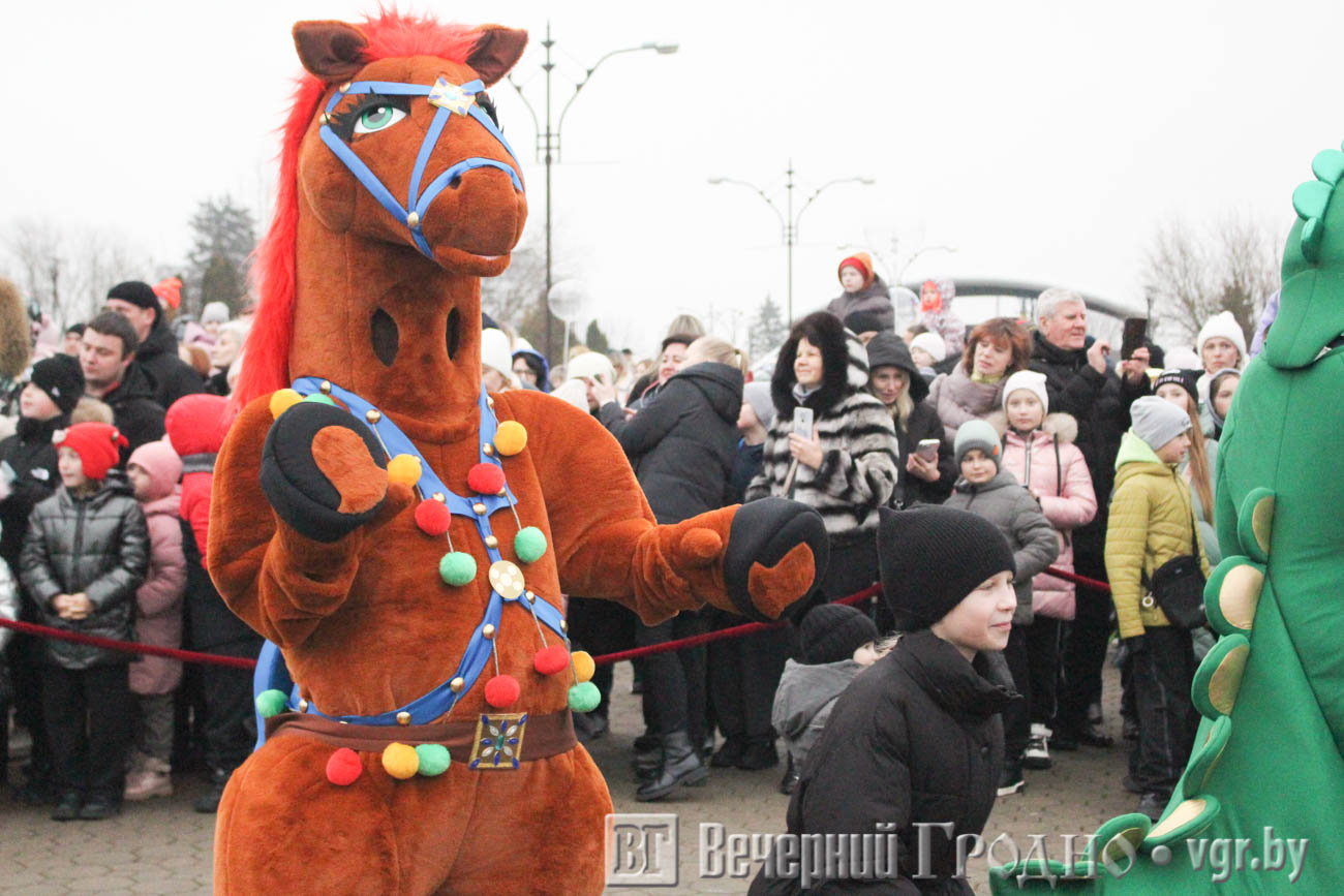 На Советской площади состоялась передача ключей от года Змеи году Лошади, после чего гродненцы зажгли огни на еще одной елке.