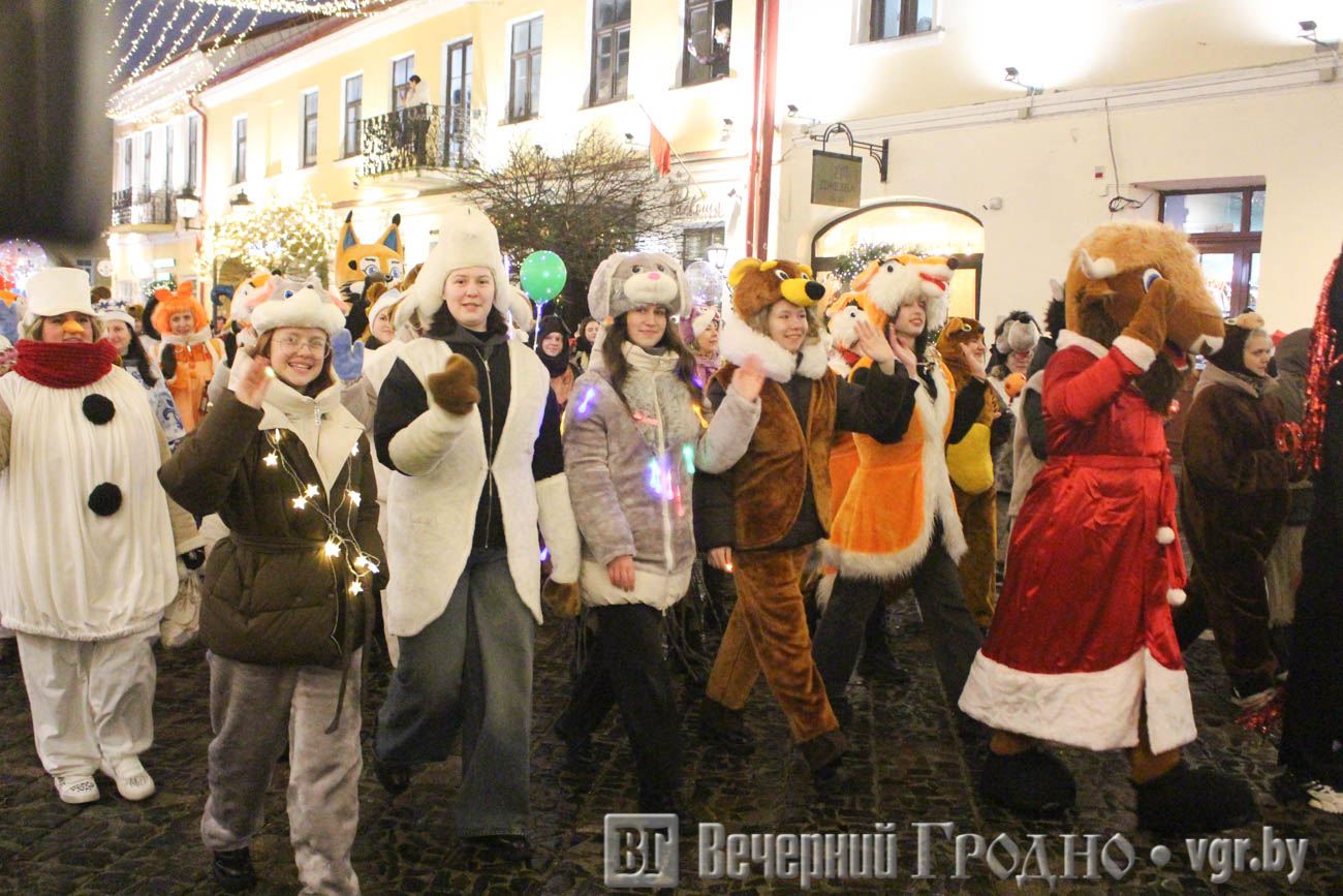 Нынешние гуляния стали одними из самых массовых в истории проведения новогодних шествий. В центре собрались тысячи гродненцев, среди которых большинство — это дети.