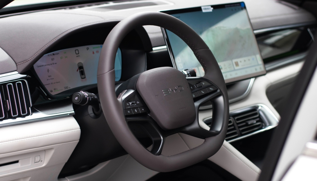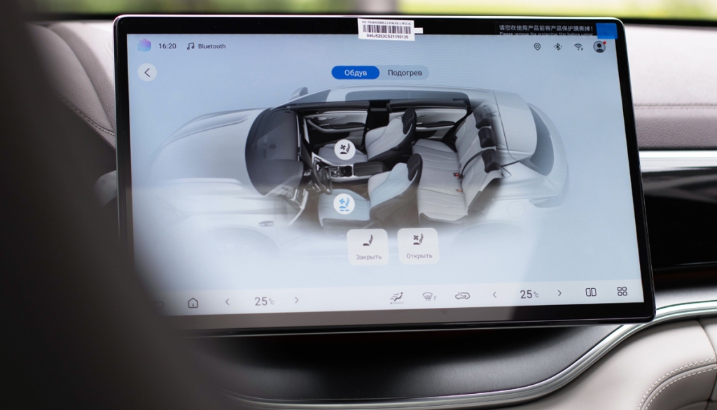 Для белорусского рынка модель адаптирована: мультимедийная система полностью русифицирована. Кстати, она представляет собой DiLink 5.0 с 15,6-дюймовым дисплеем и 10 динамиками Infinity. Говорят, звук почти как в кинотеатре. Также присутствуют система кругового обзора и адаптивный круиз-контроль.