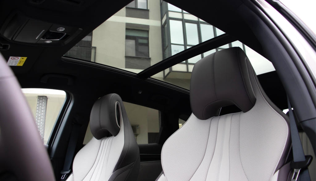 Внутри красиво, удобно и технологично. В зависимости от комплектации в автомобиле будут дистанционная парковка, панорамная камера, интеллектуальная система торможения, проекция на лобовое стекло и сиденья с подогревом.