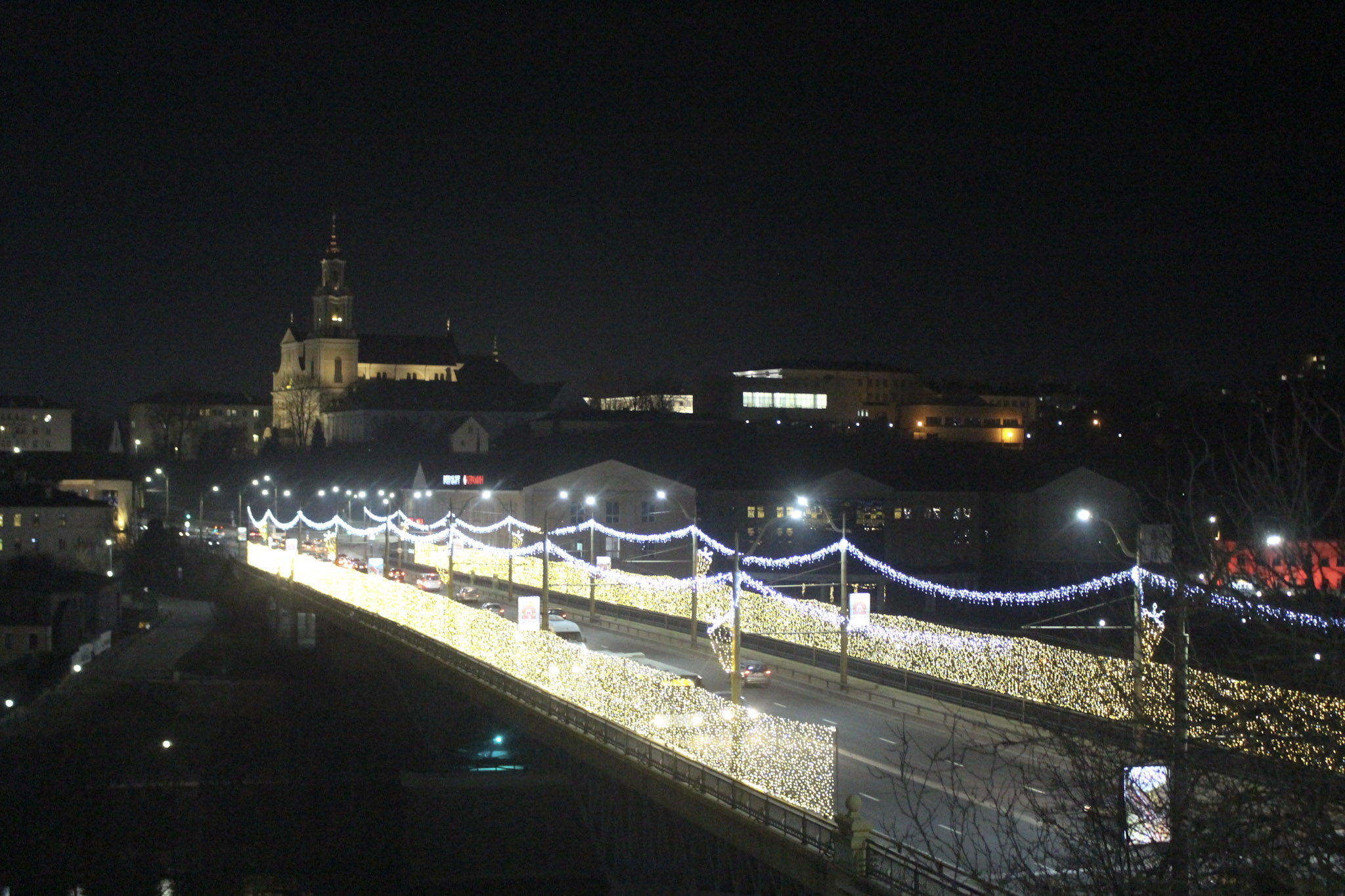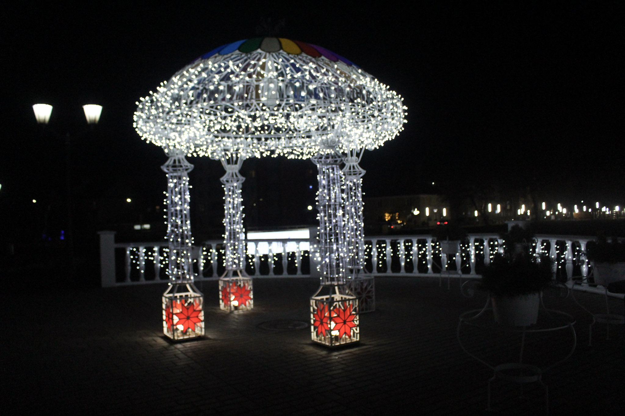 Второй год подряд в Старый мост в Гродно сияет яркими новогодними огнями.