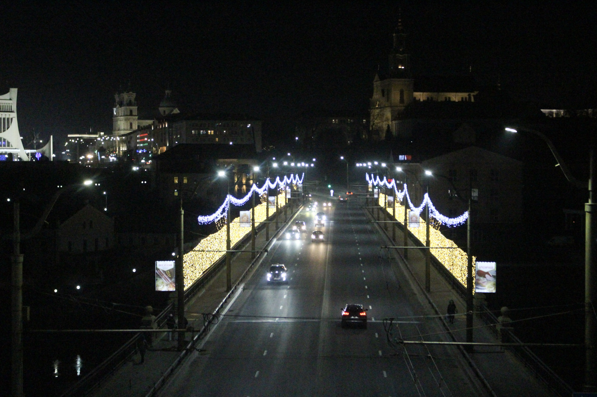 Фотофакт. Новогодняя иллюминация на Старом мосту в Гродно
