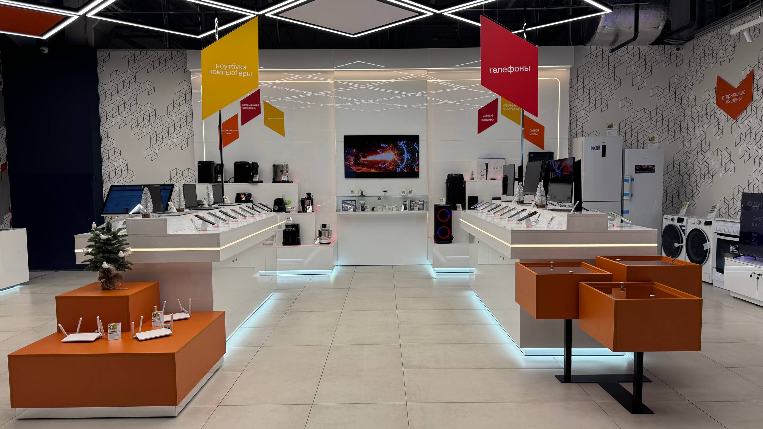 В ассортименте магазина телевизоры, смартфоны, роутеры, робот-пылесосы и вертикальные пылесосы, умные колонки, ноутбуки и компьютерная техника, водонагреватели, газонокосилки и триммеры, мощные мойки высокого давления, кондиционеры, электросушилки, аэрогрили, а также велосипеды, электровелосипеды и электросамокаты.