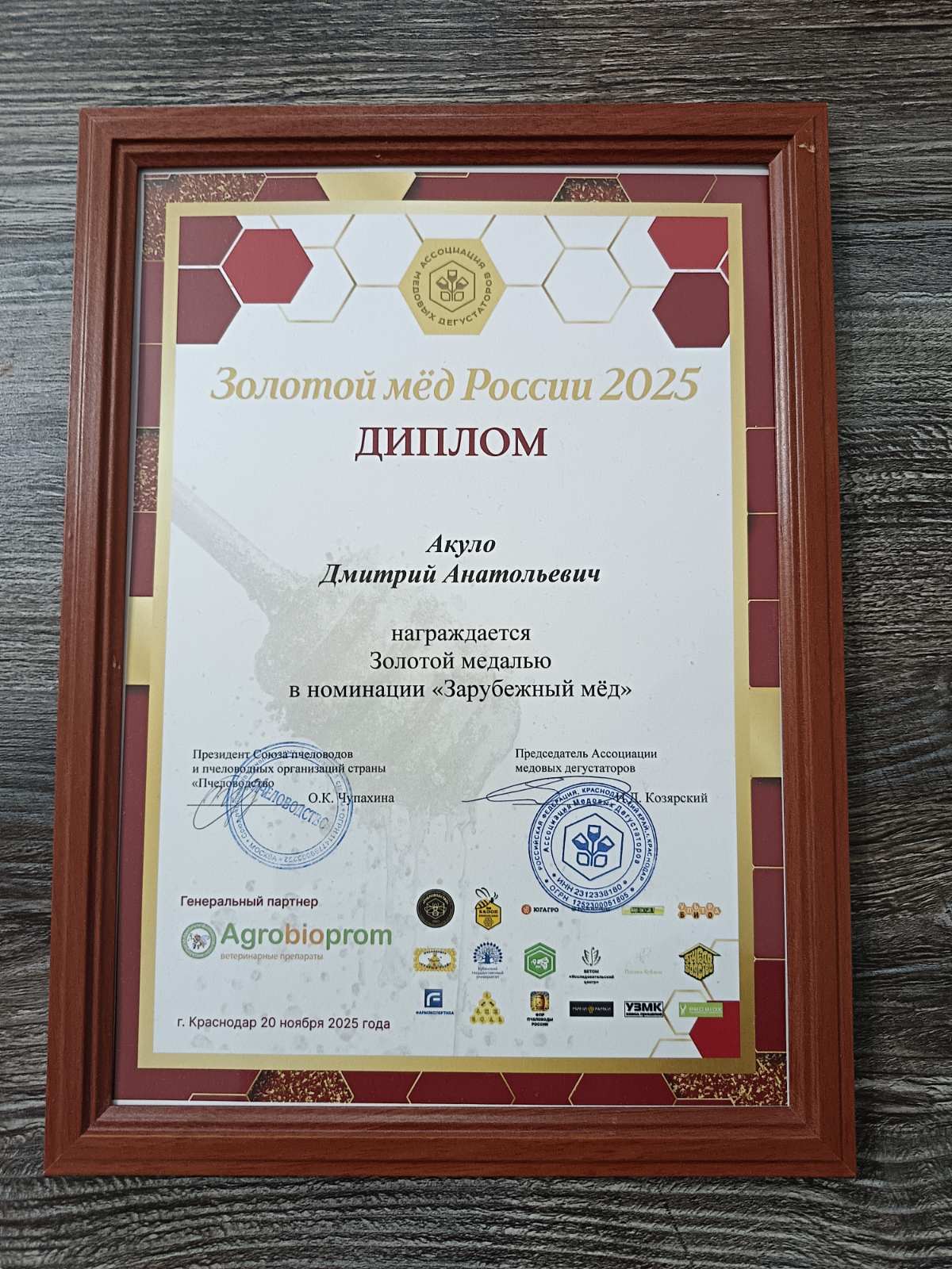 На международном конкурсе «Золотой мед России» вересковый и липовый мед Дмитрия Акуло получили золотую и бронзовую медали соответственно.
