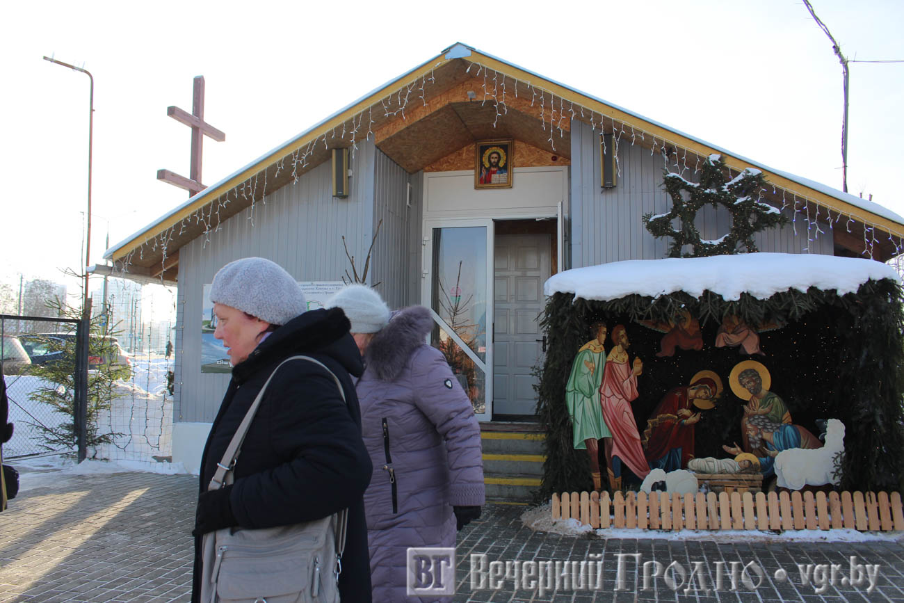 Гродненцы заходили во временную церковь, молились и ставили свечи, разговаривали с настоятелем храма иереем Алексеем Савко.