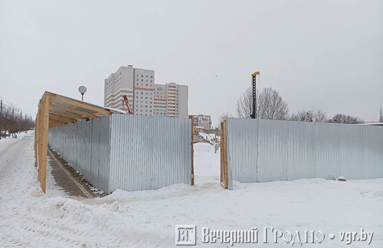 Участок неподалеку от общежития ГрГУ имени Янки Купалы огорожен. Судя по всему, сейчас здесь идут подготовительные работы.
