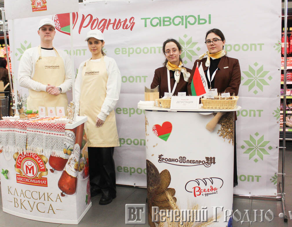 ОАО «Гродненский мясокомбинат» и ОАО «Гроднохлебпром» благодарят сеть магазинов «Евроопт» за сотрудничество и возможность познакомить жителей Беларуси с продукцией своих предприятий!