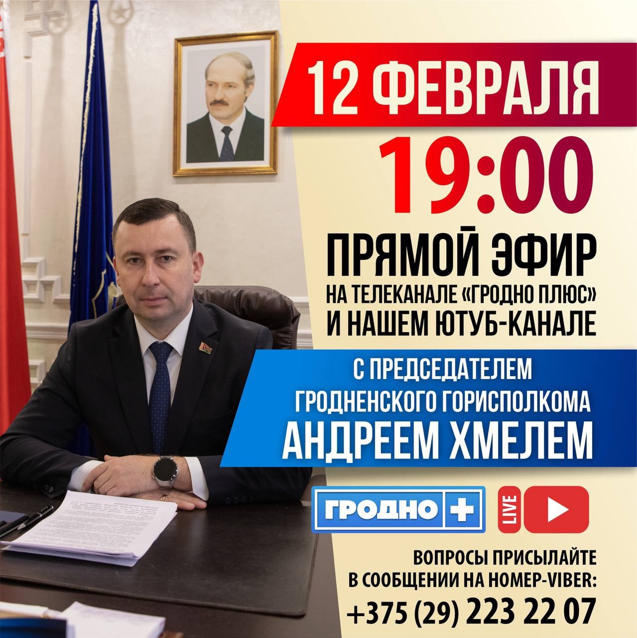 Прямой эфир пройдет на телеканале и YouTube-канале «Гродно Плюс».