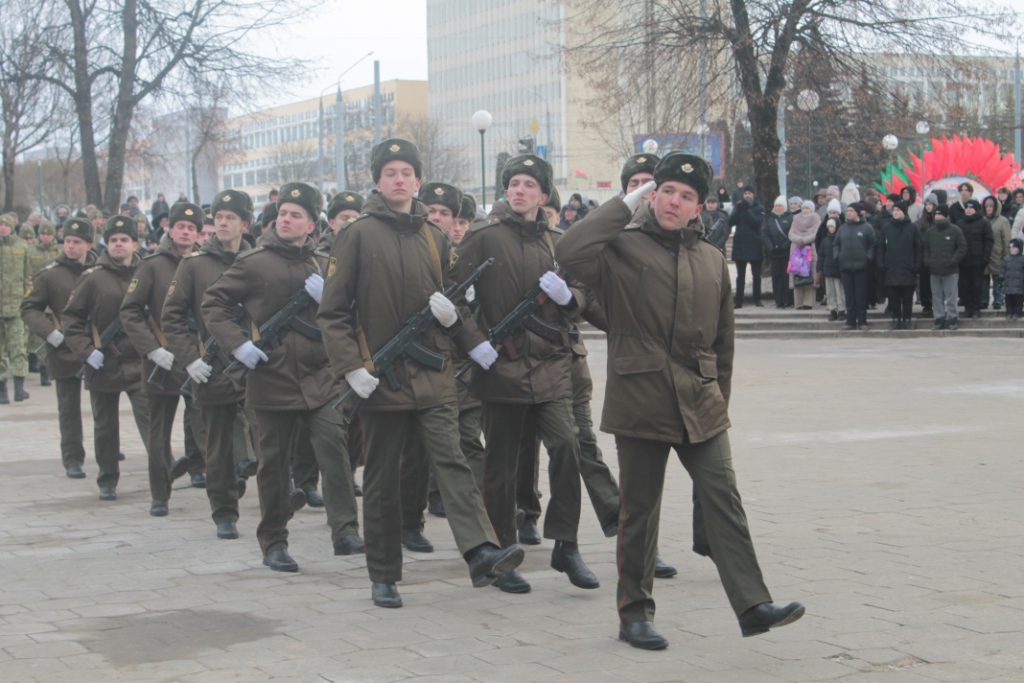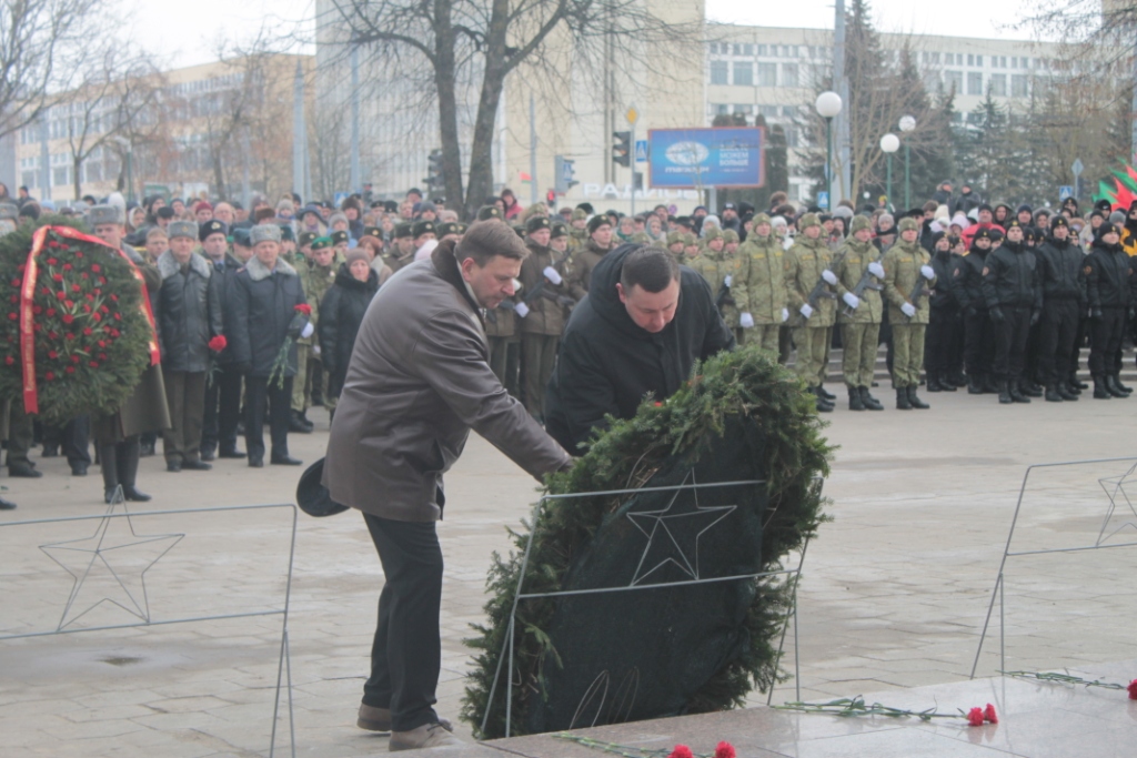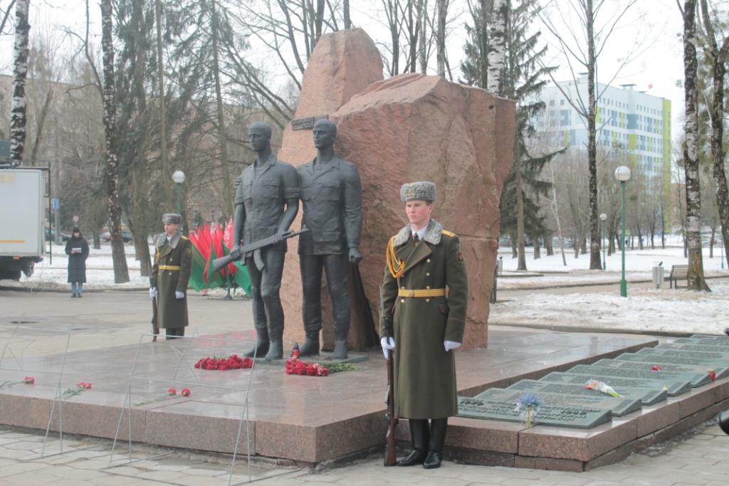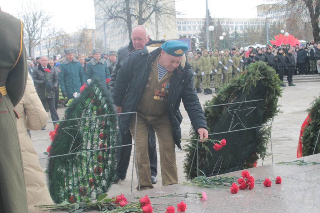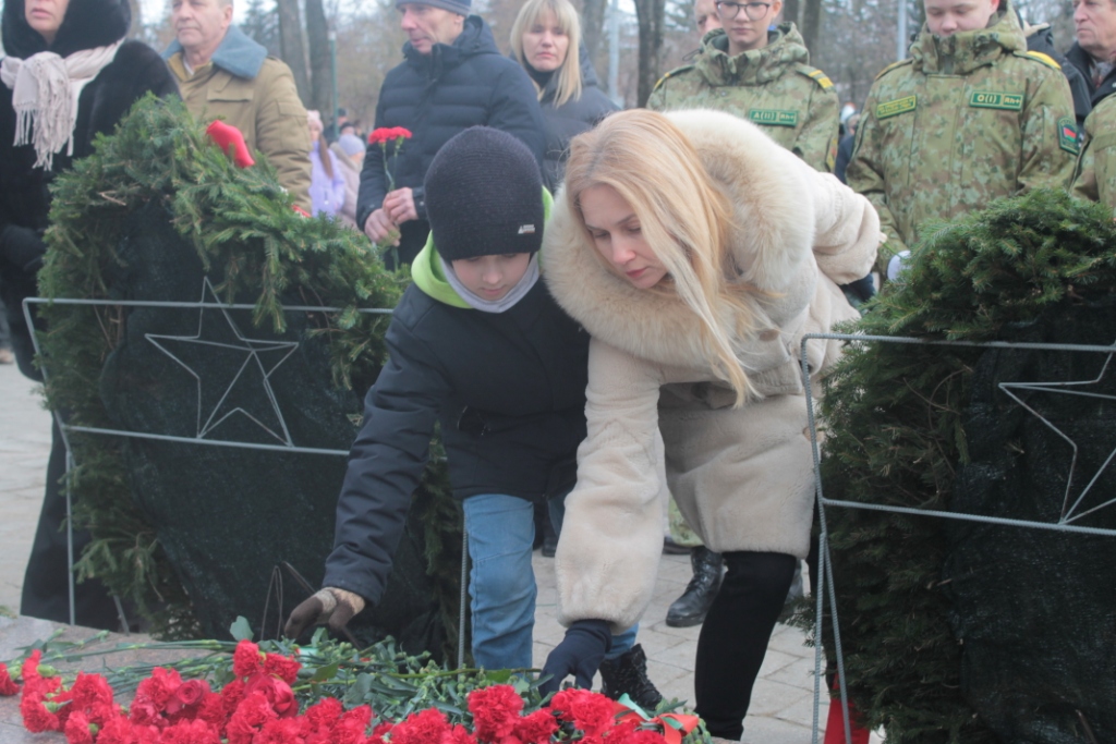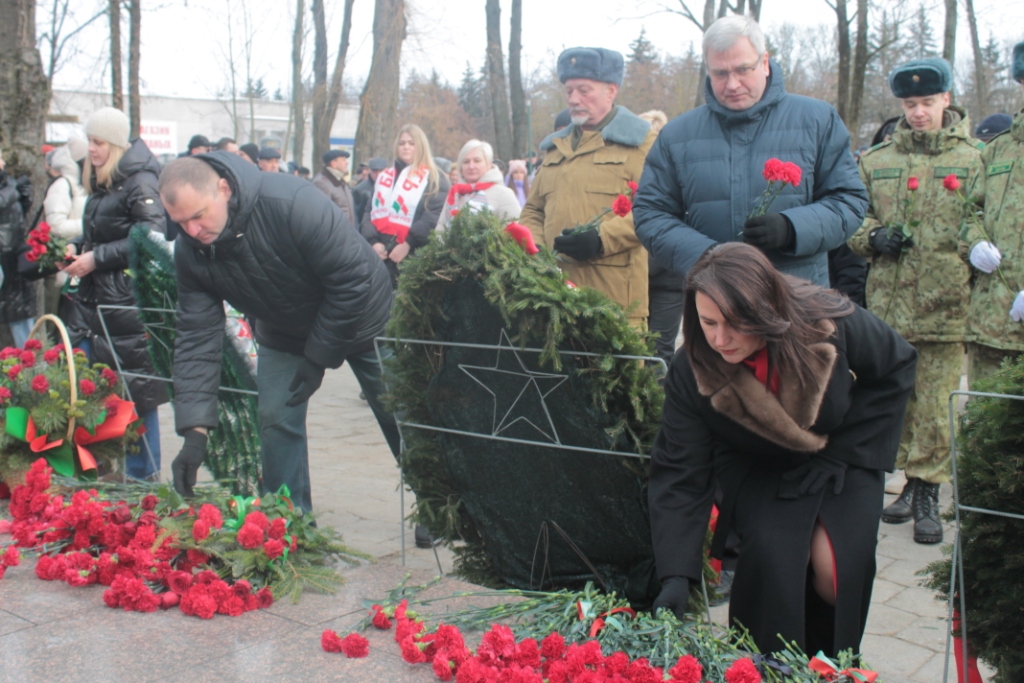 Гродненцы почтили память тех, кто не вернулся с войны. Участники возложили венки и цветы к памятнику.