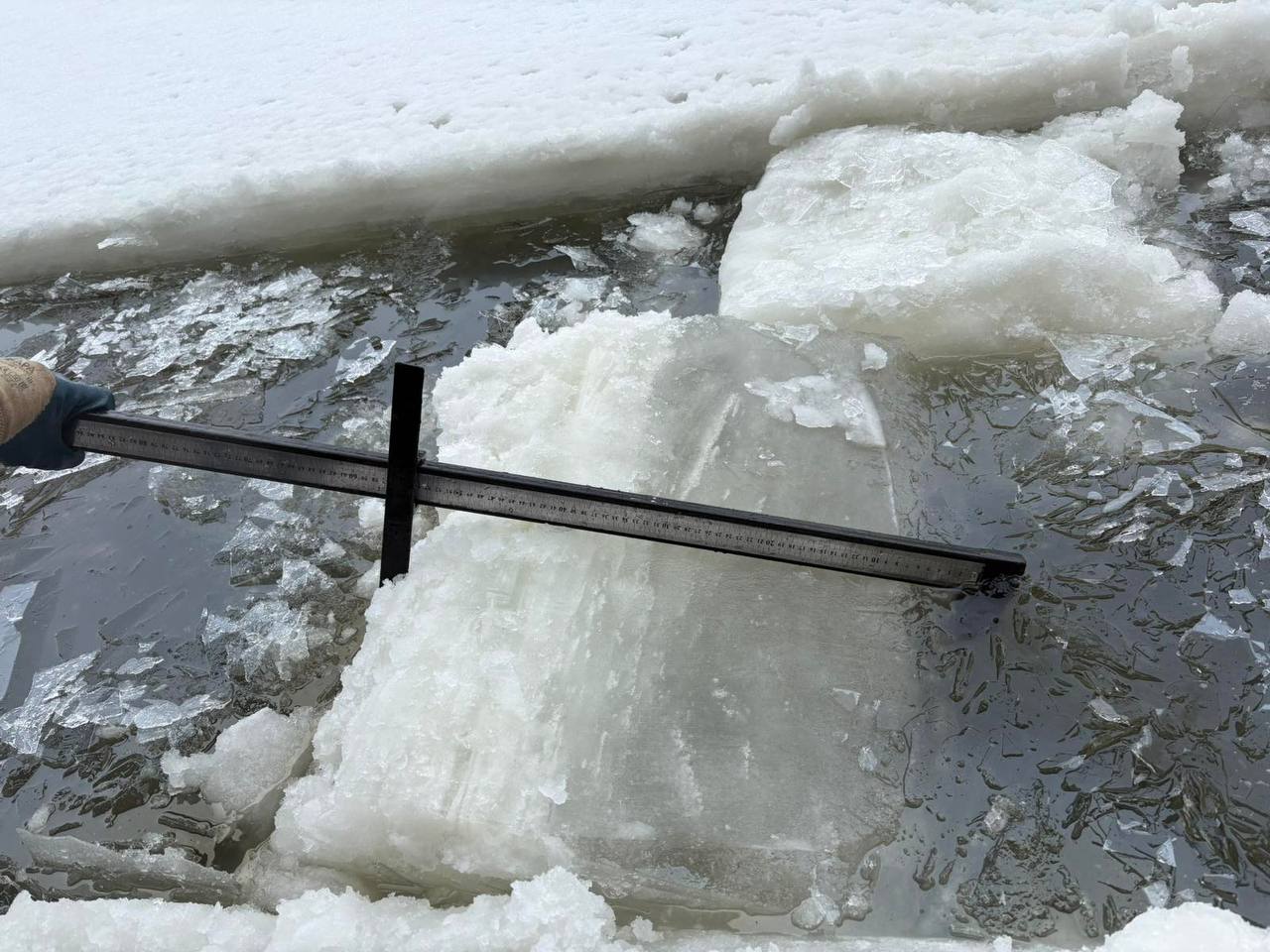 Толщину льда можно рассмотреть на фото: вблизи плотины она достигала полуметра. Это максимум, который фиксировали с момента начала эксплуатации станции.