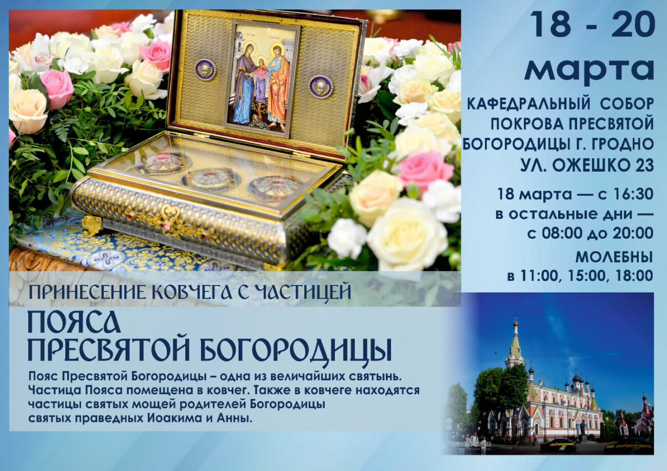 С 18 по 20 марта верующие могут прикоснуться к поясу Пресвятой Богородицы.