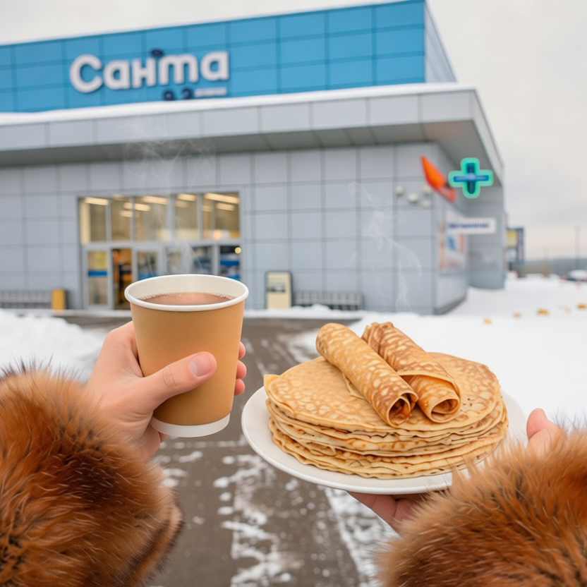 В Гродно у магазина «Санта» будут бесплатно угощать блинами и ягодным морсом