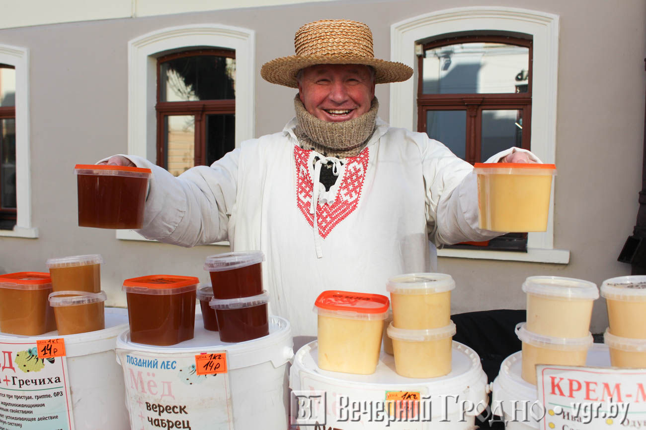 За время своего существования «Казюки» несколько раз меняли место проведения. Ремесленники собирались на Советской площади, на площади Ленина, в парке Жилибера, а на этот раз ярмарка заняла почти всю пешеходную Советскую улицу. С погодой повезло: в Гродно первый теплый солнечный день, это отличная причина выйти из дома.