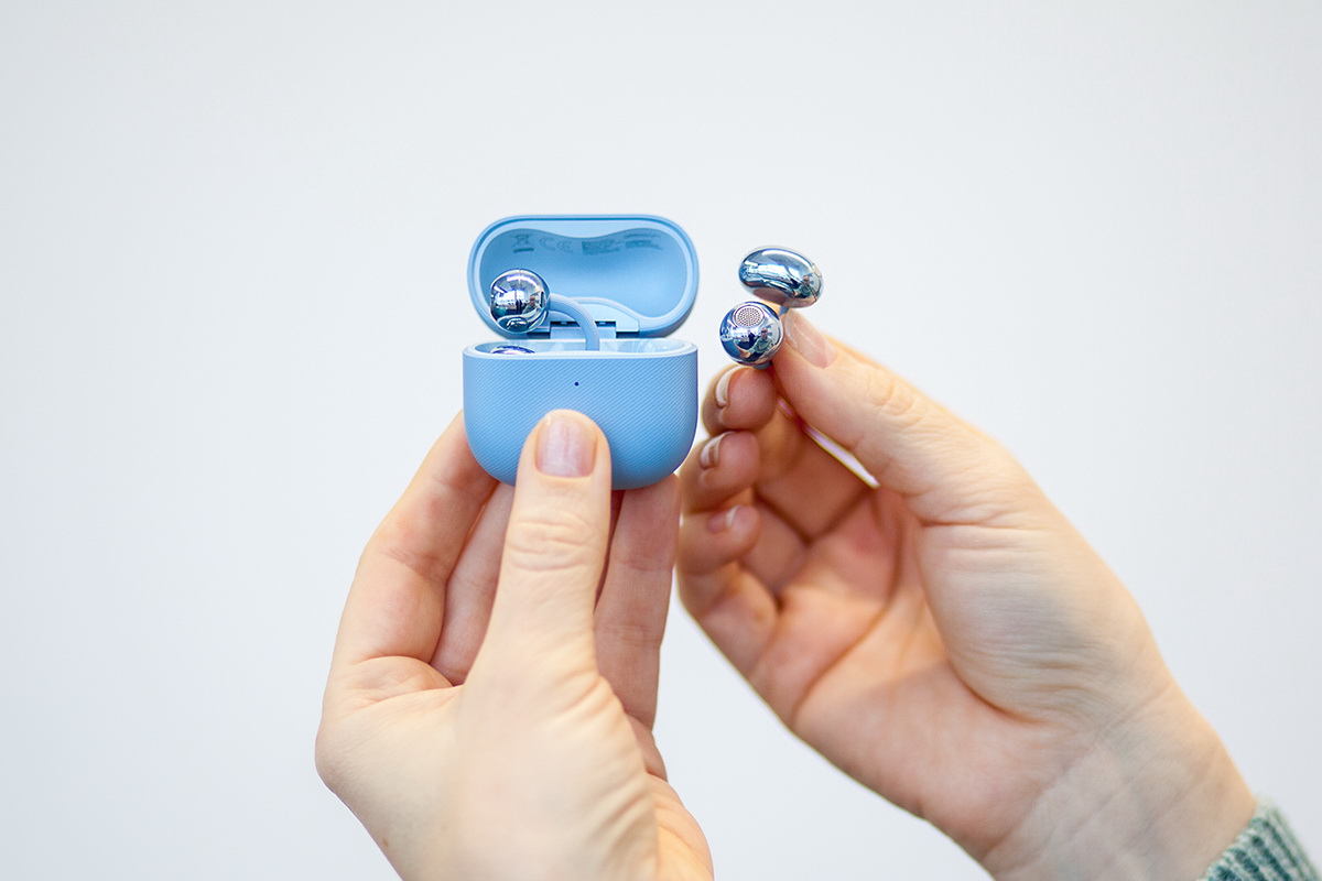 Конструкция у наушников симметричная, поэтому не нужно следить, где левый, а где правый элемент. Они взаимозаменяемы: достаточно просто закрепить их на ушах, а система сама опознает ориентацию и корректно распределит каналы.