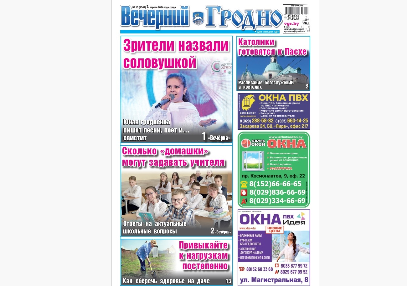 В этом номере вы найдете расписание богослужений в костелах, новости спорта и криминала, а также полезные дачные советы. Все это ищите в киосках и магазинах города, а также купить дешевле в редакции на Социалистической, 32.