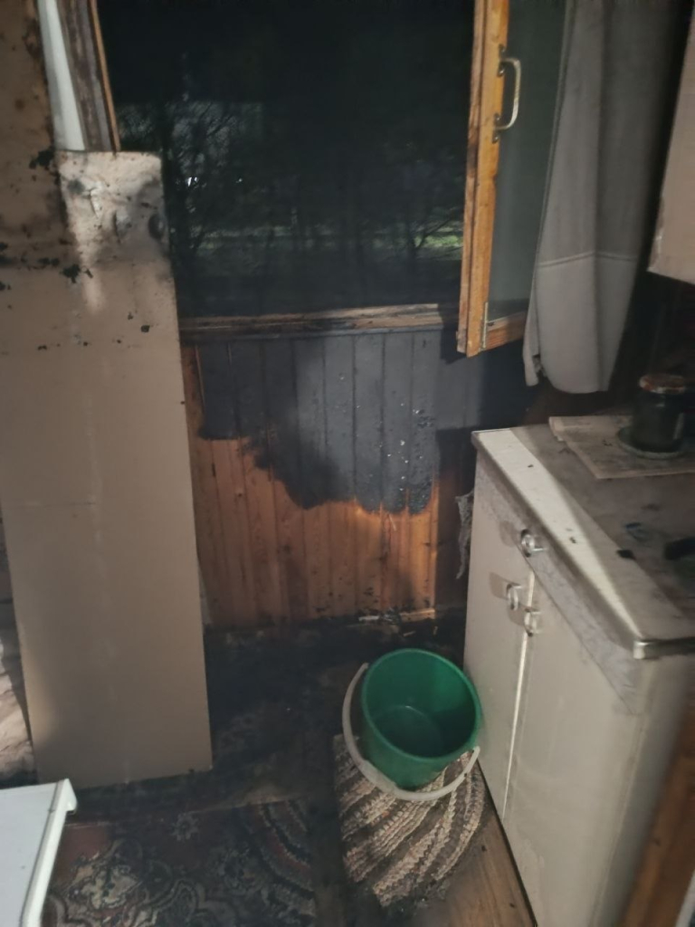Подразделения МЧС установили, что хозяйка справилась с горением собственными силами. На балконе была повреждена деревянная отделка. Никто не пострадал.
