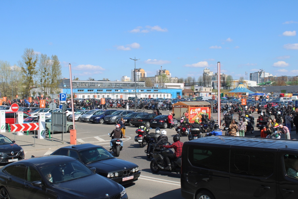 Погода сыграла свою роль — в этом году, кажется, открытие мотосезона было одним из самых масштабных. Мотоциклистов собралось столько, что колонна растянулась на несколько километров, а отрезок от кольца Брикеля — Дубко — Дзержинского до поворота на парковку OldCity участники проезжали около получаса.